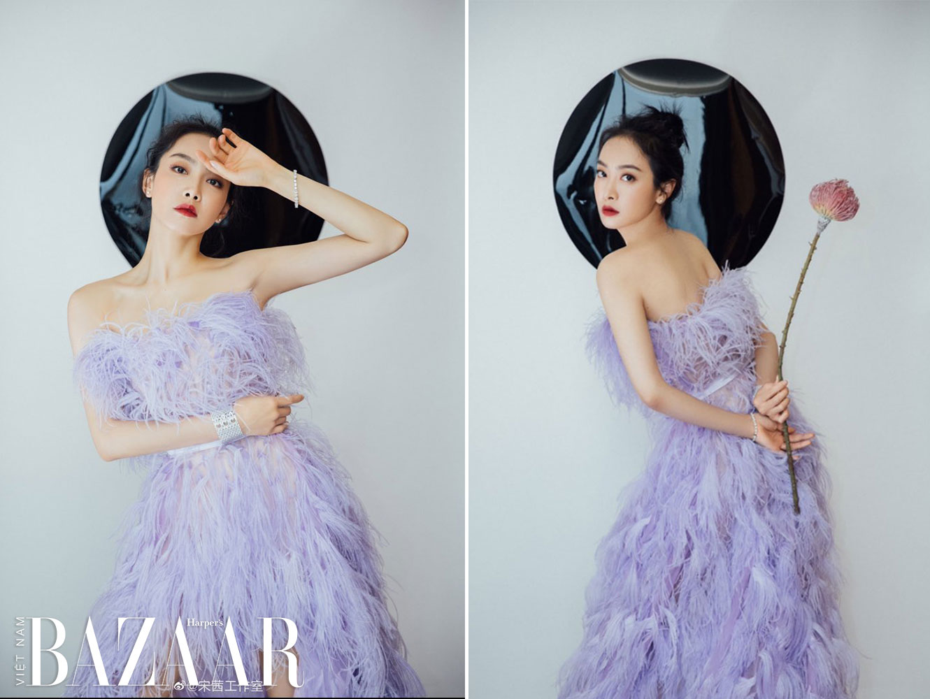 Victoria Tống Thiến trong đầm lông vũ đặt may đo riêng tại đêm hội Weibo Night 2020