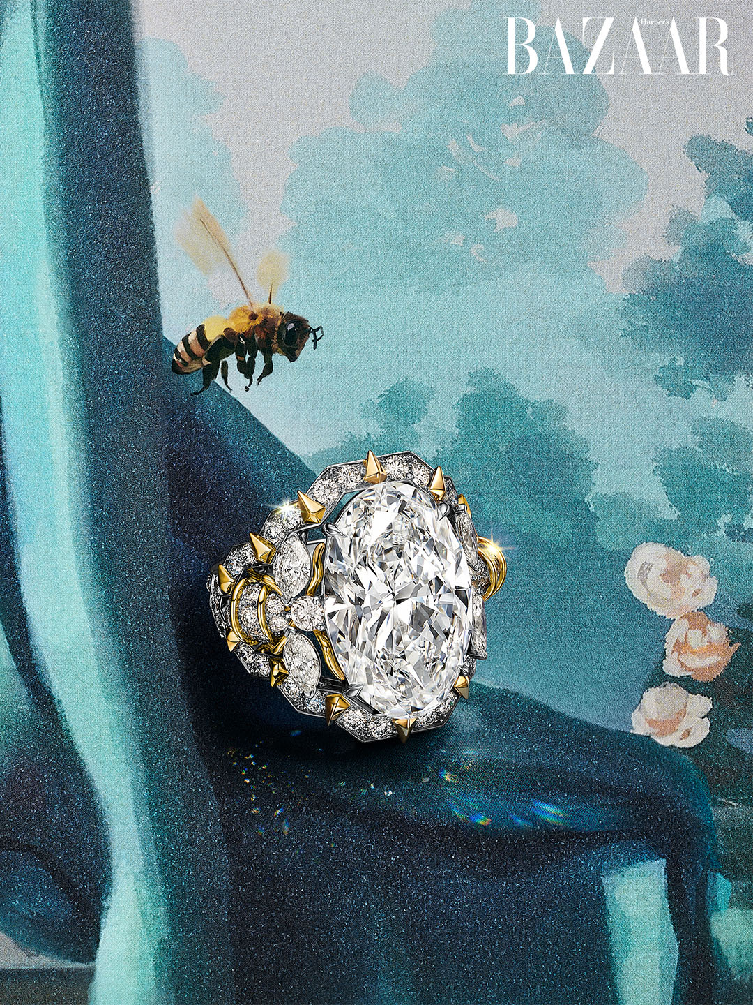 Lấy cảm hứng từ chiếc nhẫn biểu tượng Two Bees của Schlumberger, câu chuyện Bee khám phá sự giao thoa tinh tế giữa cấu trúc tổ ong hình học và chuyển động hữu cơ. Những viên kim cương oval được đặt trong khung lục giác điểm vàng 18k, đỉnh cao là chiếc nhẫn với viên kim cương oval loại D, hoàn mỹ nội tại, hơn 10 carat, được bao quanh bởi những chú ong ẩn tinh tế.