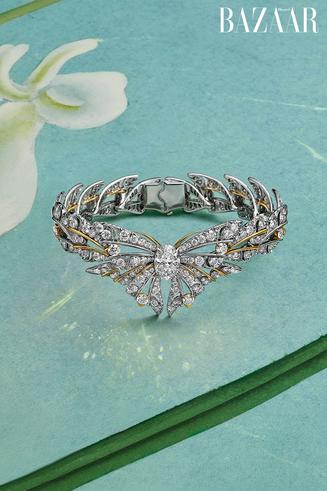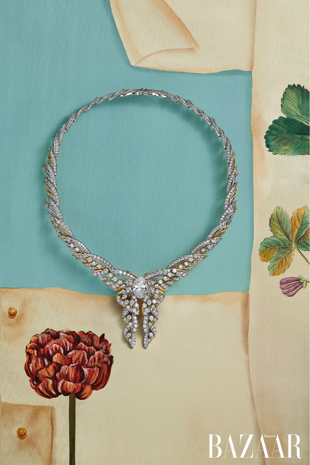Song song đó, hai sáng tạo kim cương nổi bật xuất hiện: một thiết kế bướm trừu tượng từ kim cương Fancy Vivid Yellow được tuyển chọn hoàn hảo, và một thiết kế sử dụng kim cương trắng oval, tái hiện sự nhẹ bẫng tinh khiết của ánh sáng. Phản chiếu chủ đề biến hóa, một số mặt dây có thể chuyển đổi thành trâm cài, minh chứng cho truyền thống thiết kế biến đổi linh hoạt đặc trưng của Nhà kim hoàn.