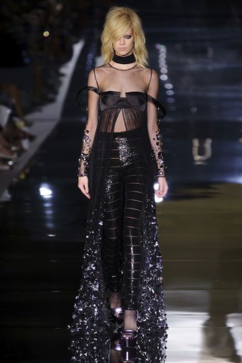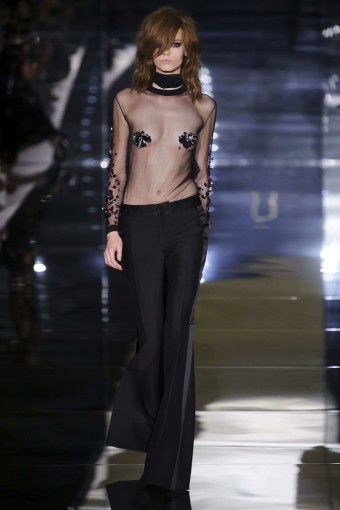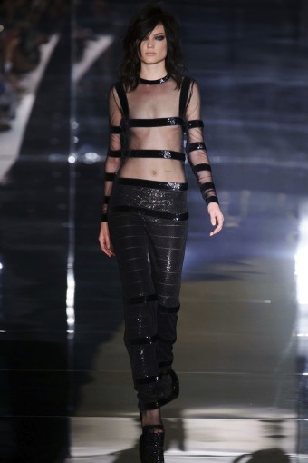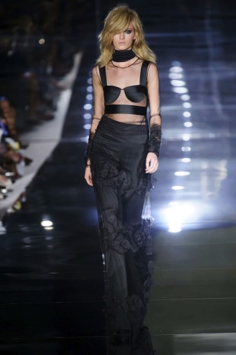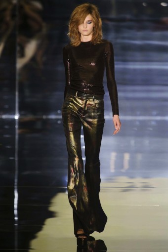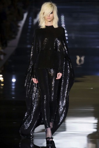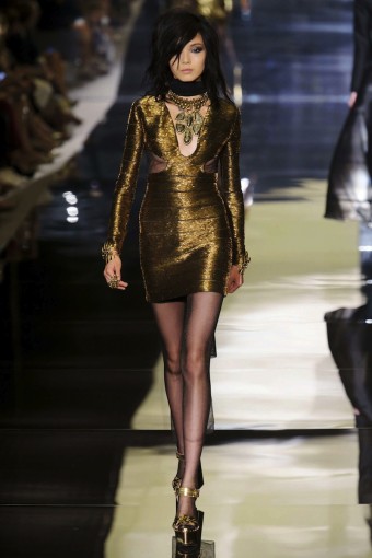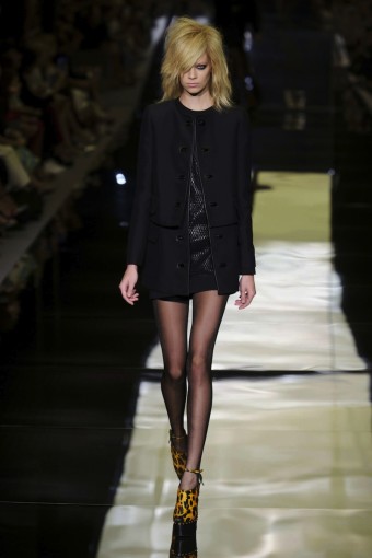 Tất cả các thiết kế trong bộ sưu tập đều nhằm khoe ra đôi chân dài thẳng tắp miên man của người mẫu. Quần tây ống loe, hoặc ôm sát như lớp da thứ hai, váy ngắn đển độ lớp tất đen còn không với tới. Nhưng có lẽ, độ dài của đôi chân cũng không hấp dẫn bằng sự trống trải của phần trên cơ thể. Những bộ đầm suôn dài làm từ những dải băng đen che vừa những chỗ cần che. Hay gây tranh cãi nhất có lẽ là các thiết kế với phần ngực trong suốt đính đá lấp lánh mà Miley Cyrus hẳn sẽ rất tâm đắc. Sexy dường như đã là một bản sắc của Tom Ford, nhưng đó là kiểu sexy riêng không hề dung tục dù tiết kiệm bao nhiêu vải đi chăng nữa.