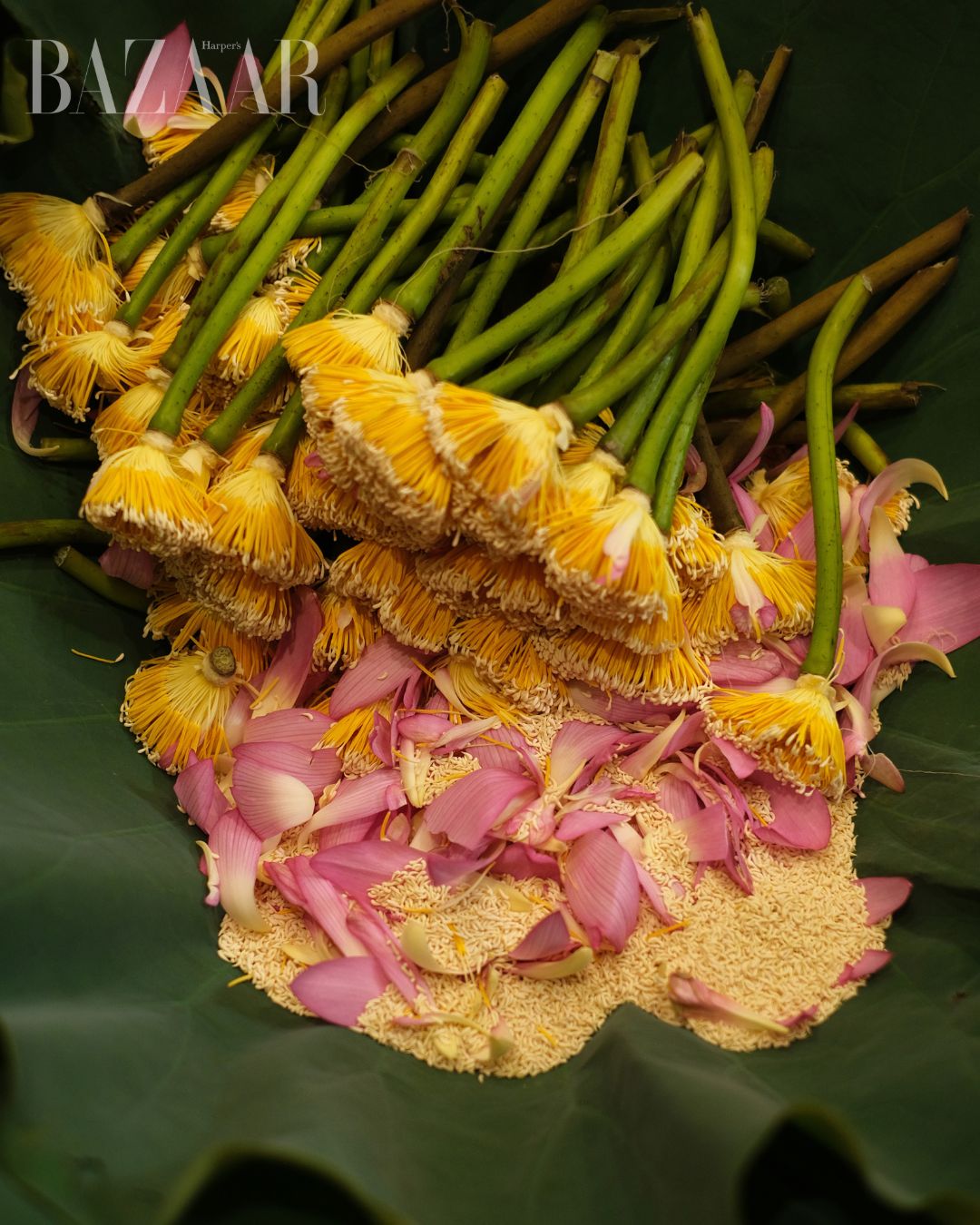 Cánh sen và gạo sen dệt hương cho phẩm trà.