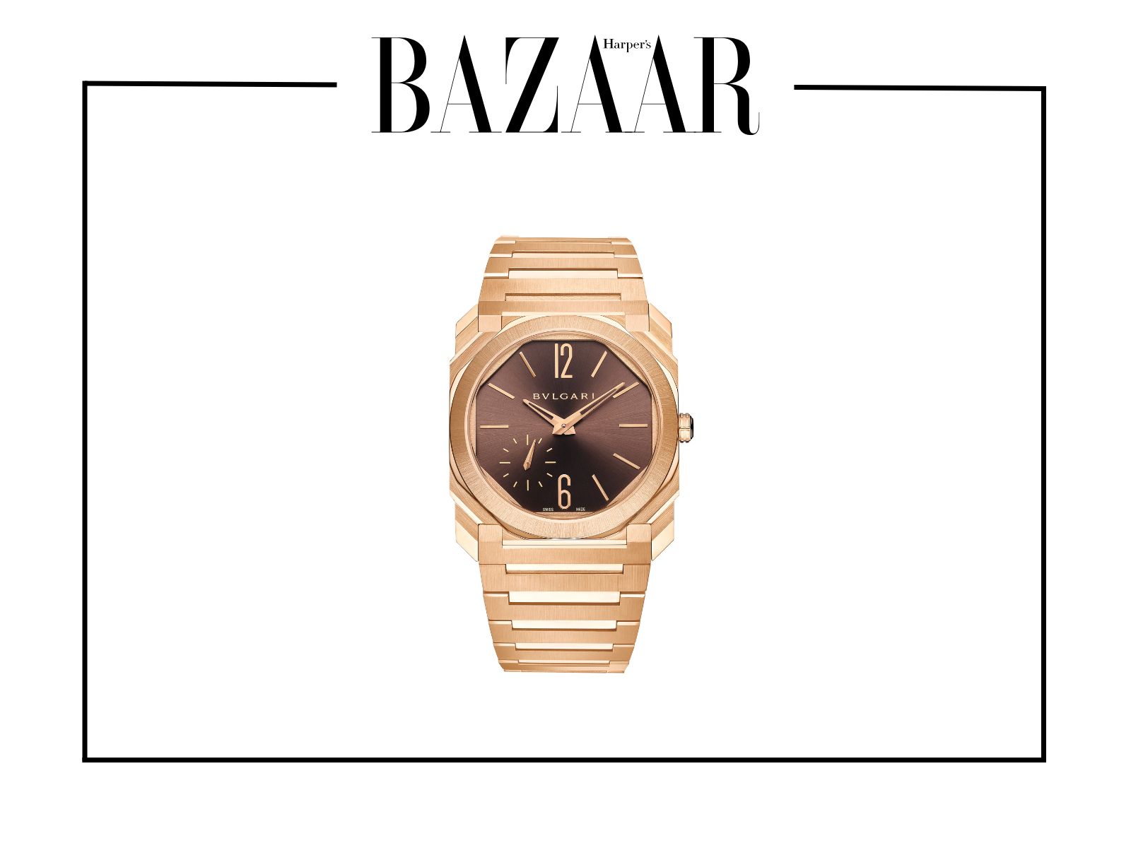 Jon Hamm, người đàn ông luôn gắn liền với hình ảnh lịch lãm, chọn cho mình chiếc đồng hồ Octo Finissimo Automatic. Theo đó, đây là mẫu đồng hồ cơ siêu mỏng với bộ máy dày chỉ 2,23 mm, tự động lên dây cót. Thiết kế nổi bật với vỏ và dây đeo bằng vàng hồng 18K được xử lý bề mặt satin và đánh bóng nhẹ, còn mặt số nâu phủ sơn mài hiệu ứng ánh mặt trời, tạo chiều sâu cuốn hút. Đồng hồ có khả năng chống nước đến 100 mét, là sự kết hợp hoàn hảo giữa sức mạnh kỹ thuật và vẻ đẹp thanh lịch.