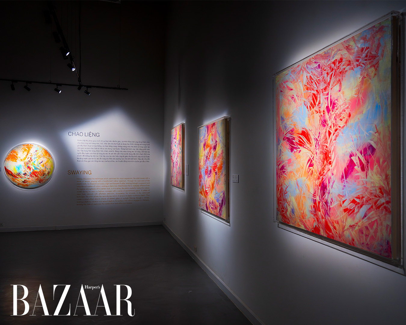 Với 28 tác phẩm hội họa, NTK Lê Minh Khoa mời người xem bước vào một dòng chảy cảm xúc nơi ranh giới giữa cá nhân và phổ quát được làm mờ, giữa động và tĩnh cùng tồn tại trong một nhịp thở chậm.