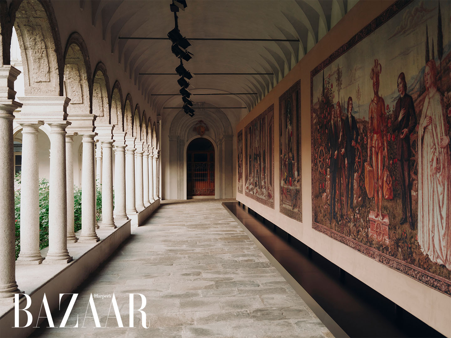 Triển lãm Gucci Memoria trải rộng khắp các hành lang tu viện, kết nối nhiều lớp sắp đặt từ thảm thêu, không gian thực vật lấy cảm hứng từ họa tiết Flora, đến các yếu tố tương tác như máy bán hàng tự động được thiết kế riêng. Tất cả cùng tạo nên một kịch bản thị giác đa tầng, nơi các chất liệu và phương tiện đối thoại với nhau.