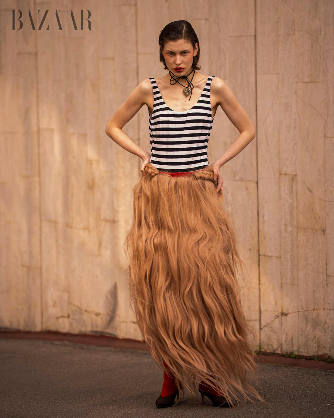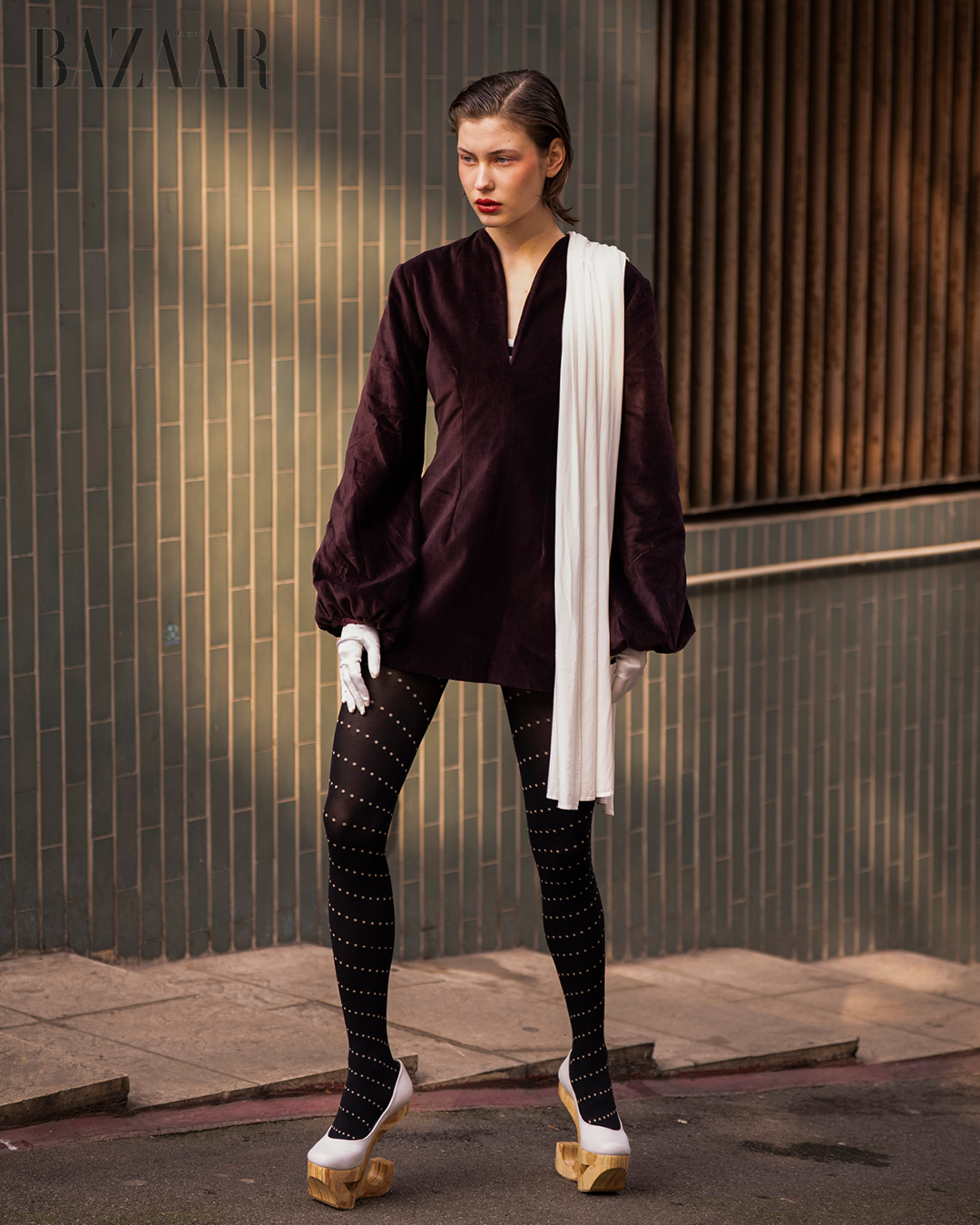 Áo: Grace Kim. Quần: Vivetta. Trang sức: Pavé The Way Jewelry. Giày: Lolo.