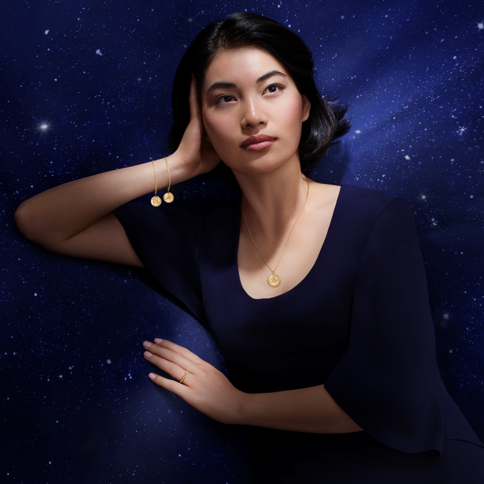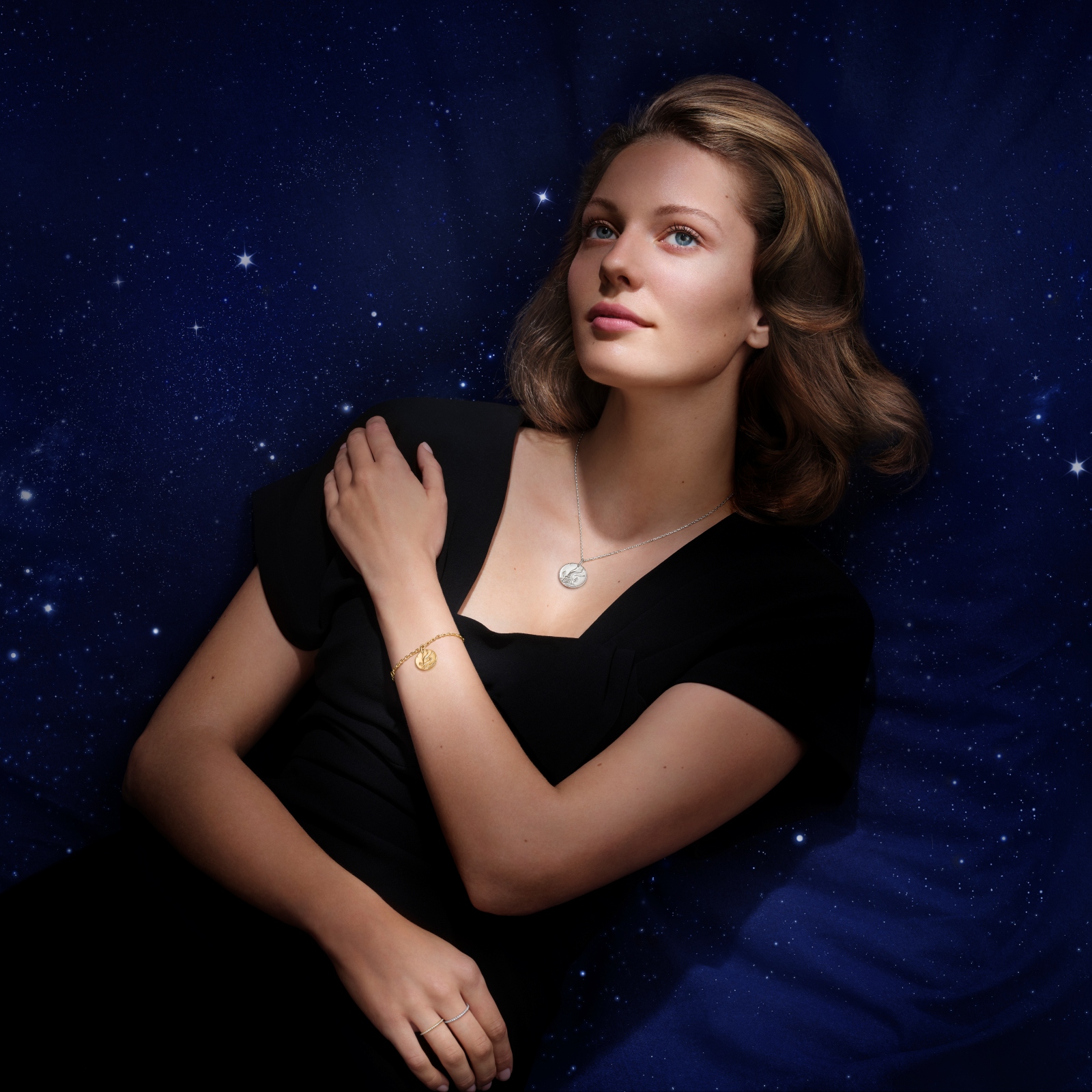 Song song đó, Maison còn giới thiệu các phiên bản huy chương bằng vàng trắng, đi kèm dây chuyền ngắn 50 cm hoặc dài 70 cm, cho phép người đeo linh hoạt biến hóa: đeo như mặt dây cổ điển, layer cùng những chuỗi khác, hoặc thậm chí giấu kín dưới lớp áo như một lá bùa hộ mệnh cá nhân. Ở đây, chiêm tinh học không còn là khái niệm trừu tượng, mà trở thành một phần của phong cách sống tinh tế, kín đáo và đầy chất thơ.