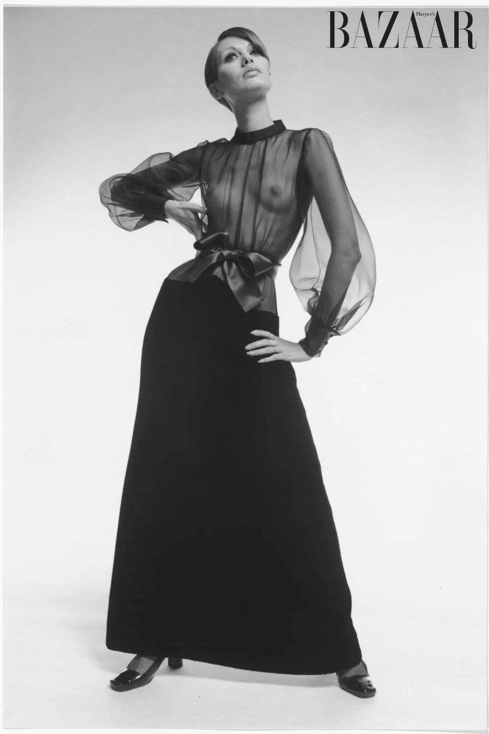 Chiếc áo để lộ ngực trần của Yves Saint Laurent trong chiến dịch Sixties Penelope Trees 1960. Ảnh: Yves Saint Laurent