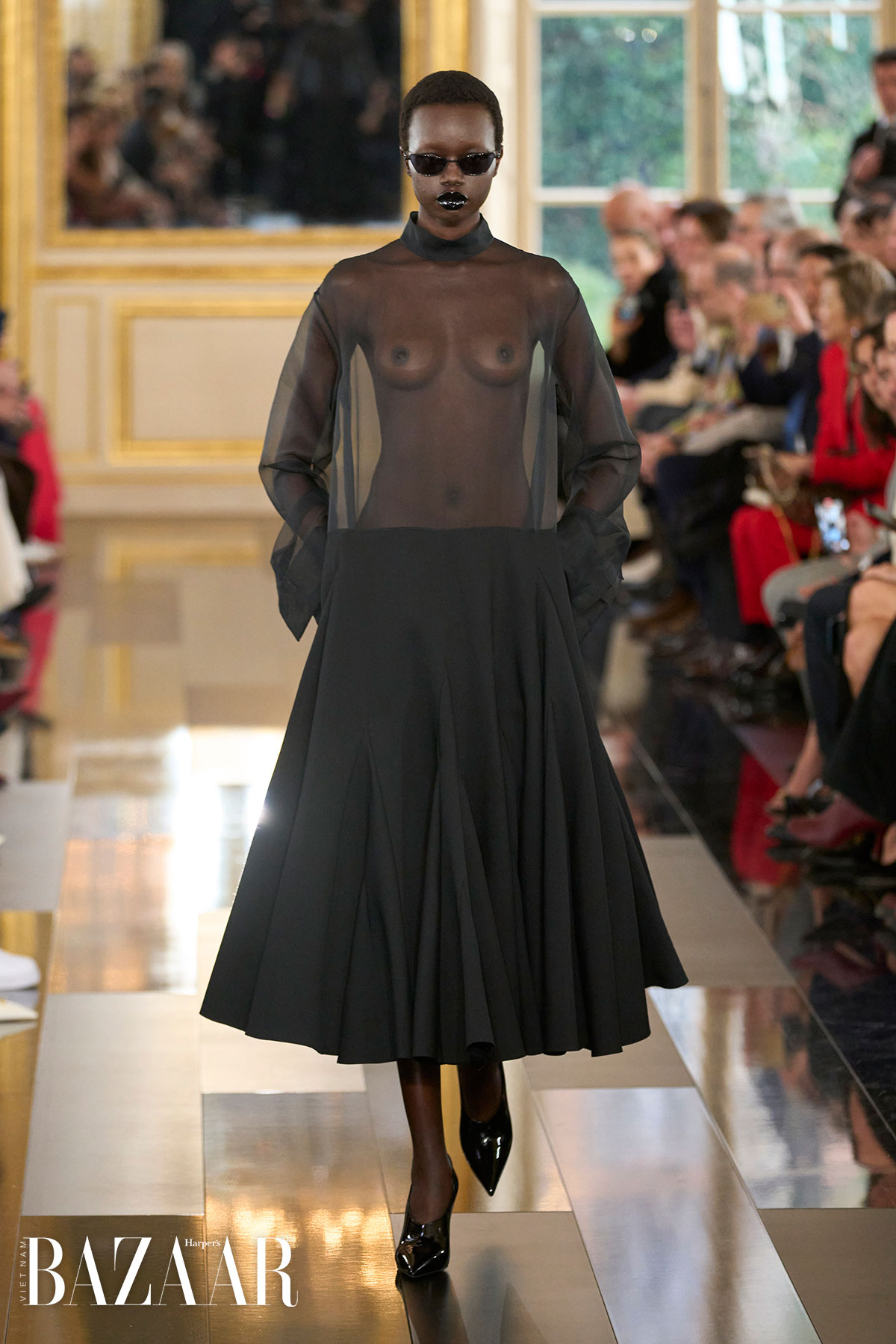 Gokey cho hay: “Không có gì ngạc nhiên khi váy trong suốt cùng “no-bra” là một trong những xu hướng thời trang lớn nhất của mùa xuân 2024, bởi nó mang tới tính nữ và tính linh hoạt hơn.”