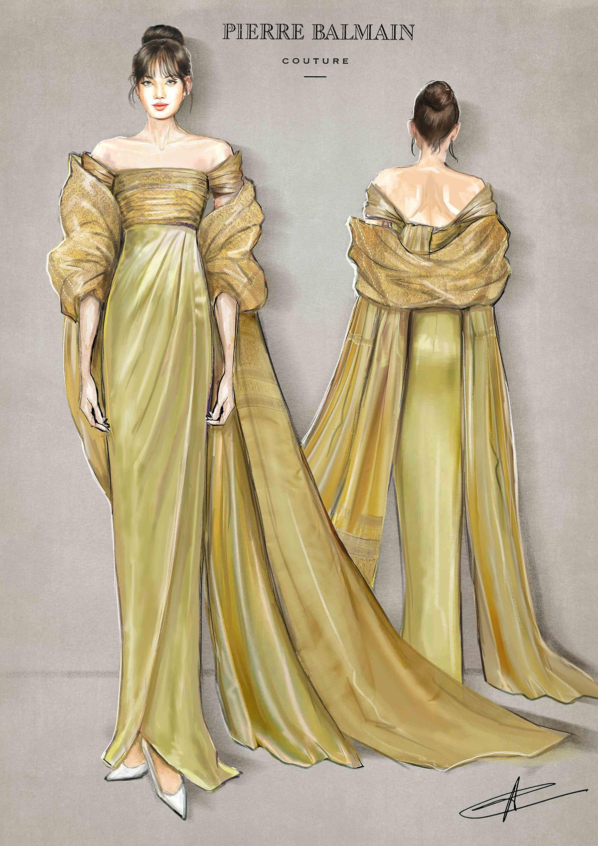 Bộ váy Lisa diện được phát triển dựa trên tinh thần của một mẫu đầm dạ hội Balmain thuộc thập niên 1960. Thiết kế mới được tái cấu trúc thành dạng bustier gown, tập trung vào kỹ thuật dựng form và draping chính xác. Đây vốn là đặc trưng của xưởng may đo thời trang cao cấp tại Paris.
