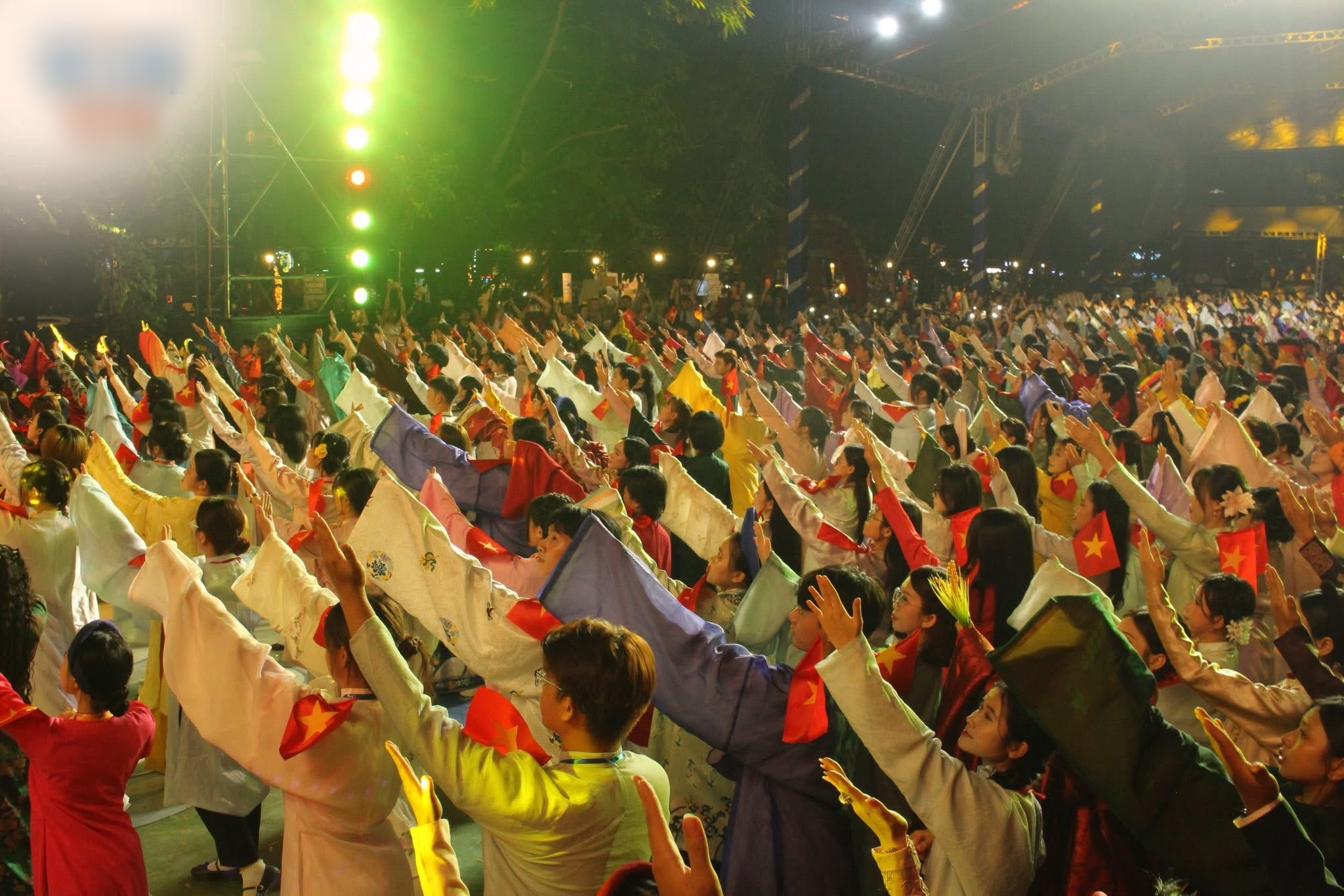 Điểm nhấn ấn tượng nhất của Tóc Xanh Vạt Áo lần thứ VI chính là màn đồng diễn Việt phục quy mô lớn diễn ra vào chiều 21/3. Khoảng 1.000 người trẻ trong trang phục truyền thống đã cùng nhau diễu hành qua những tuyến đường trung tâm thành phố, biến không gian đô thị quen thuộc thành một sàn diễn văn hóa sống động.