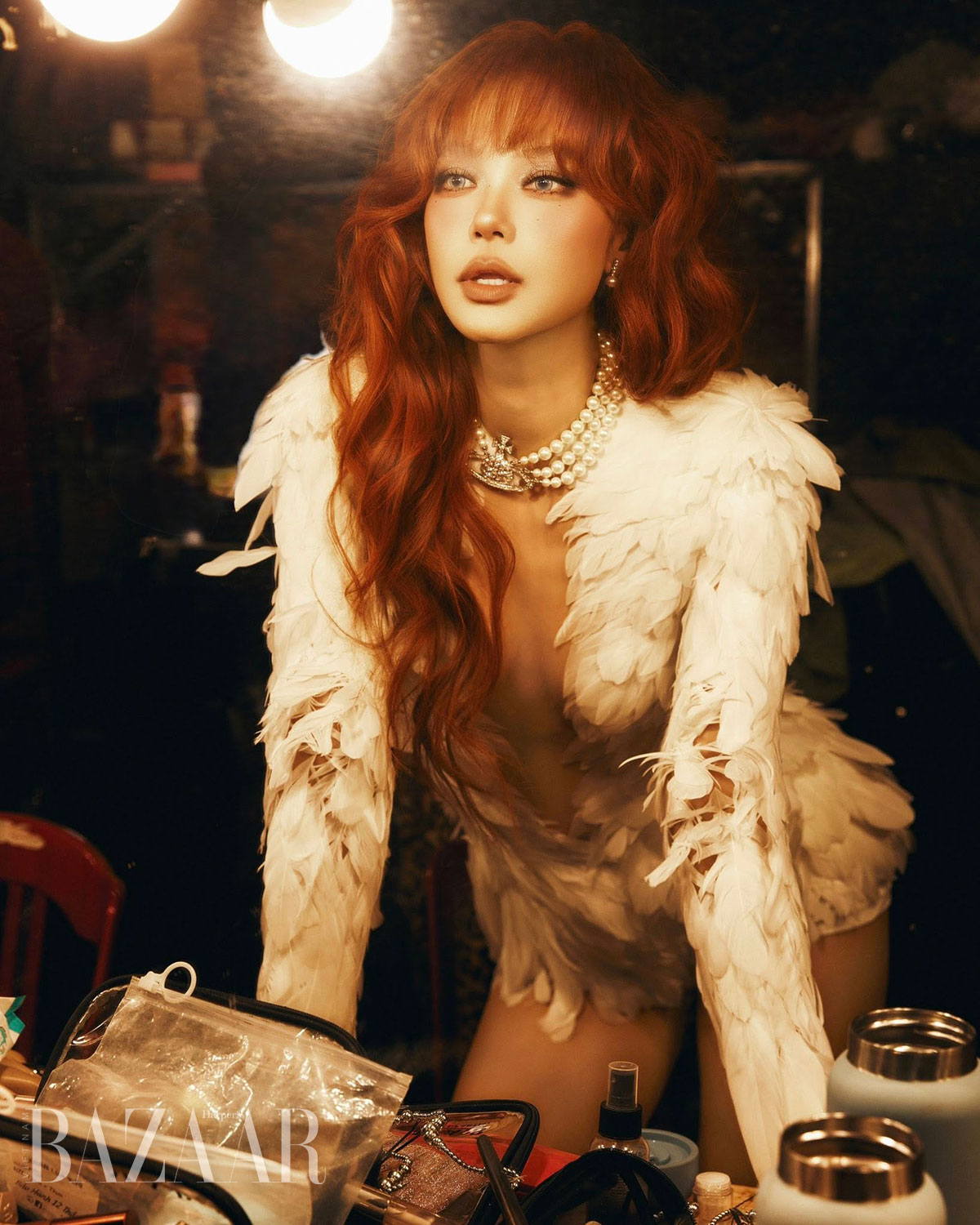 Tóc Tiên truyền tải phong cách Punk với vòng cổ Vivienne Westwood và mái tóc đỏ rực lửa. Ảnh: Instagram @toctien1305