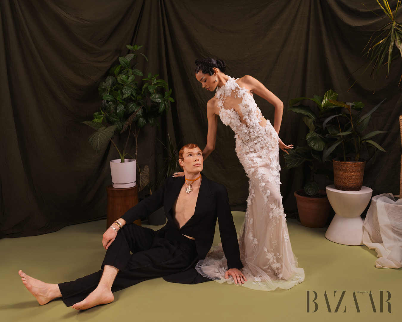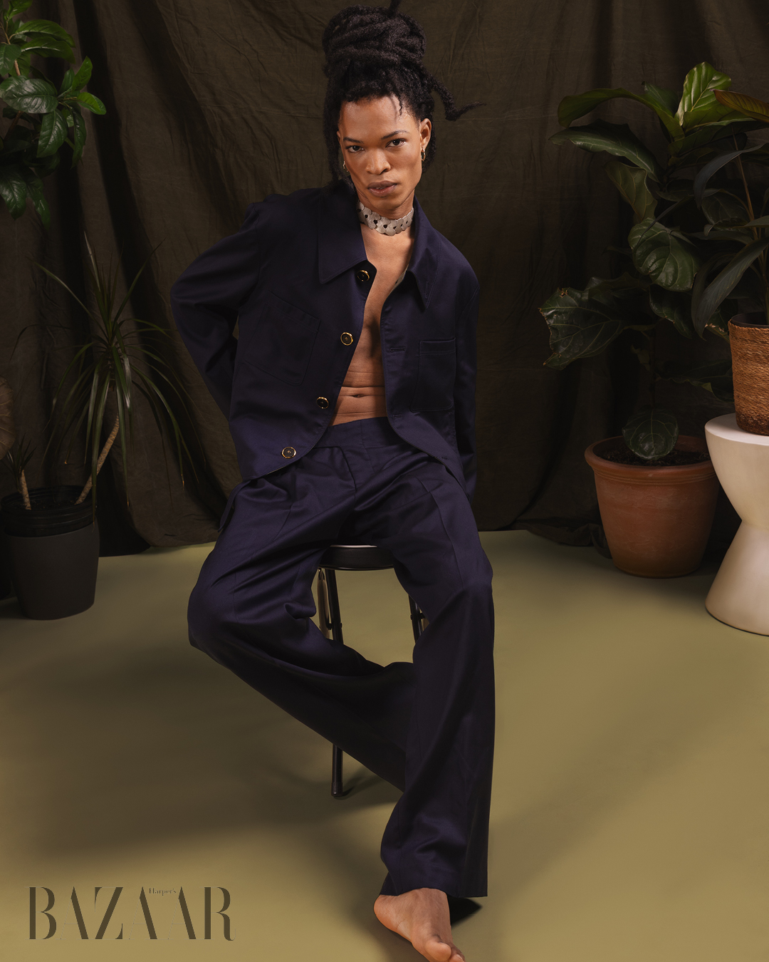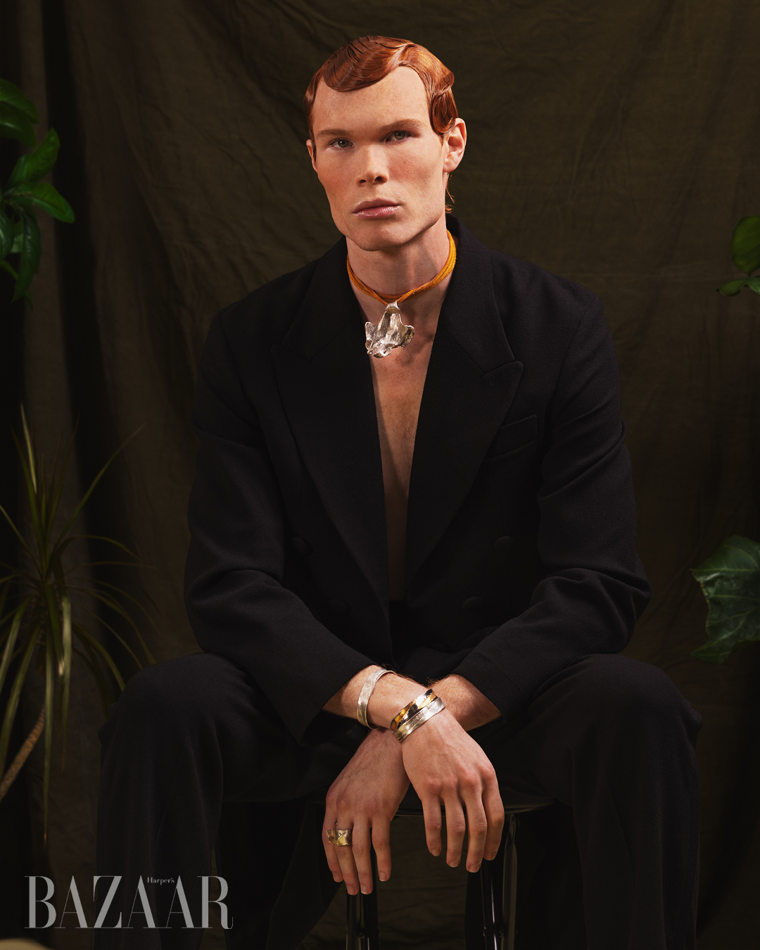 Immanuel Sealy. Bộ suit: Jack Sivan. Trang sức: Eileen Papas.
