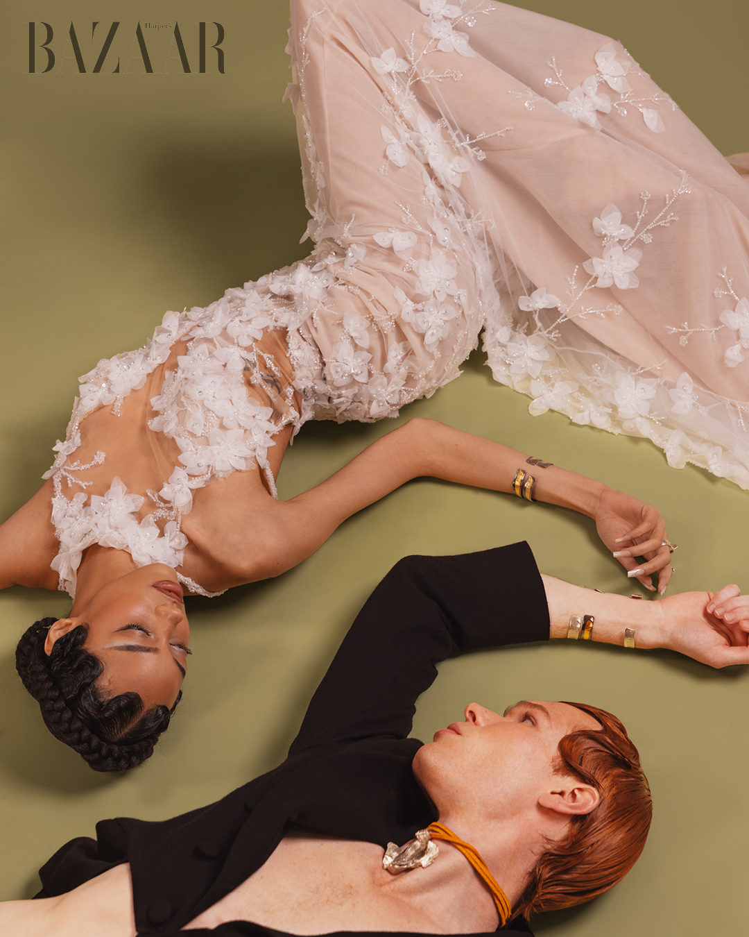 Daisy Oh. Đầm hoa: Julie Vino (Nicole Bridal). Trang sức: Eileen Papas.