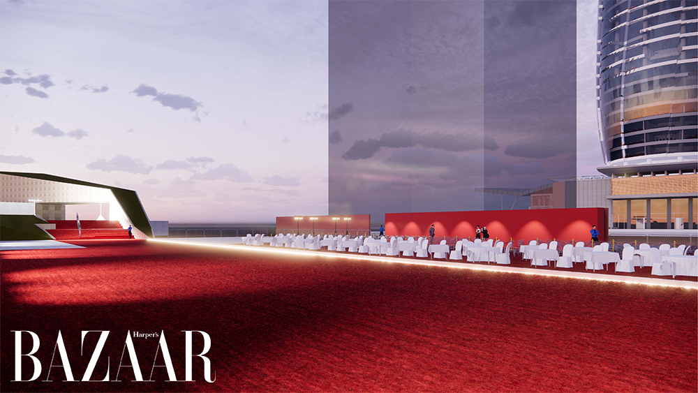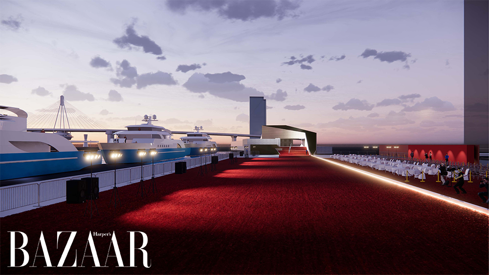 “Sắc đỏ của sàn diễn lần này sẽ phủ sắc cả một góc bến cảng, hòa mình vào sắc trời hoàng hôn bên bờ sông Hàn, tạo nên khung cảnh trùng trùng điệp điệp mà vẫn trữ tình. Sắc đỏ này cũng ngụ ý cho tình yêu nhiệt thành vĩnh cửu, đẹp như chính khoảnh khắc được ngắm pháo hoa rực rỡ bên người thương” – NTK Đinh Trường Tùng chia sẻ.