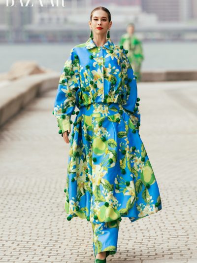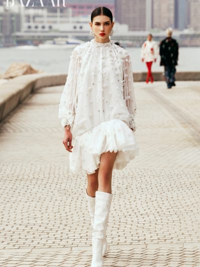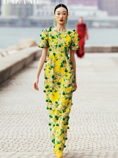 Thương hiệu cũng đi cùng với nhịp bước của thời đại qua những chiếc váy bong bóng (bubble dress) bồng bềnh đã “làm mưa làm gió” vài năm trở lại. Những chiếc váy được cắt cúp táo bạo và phồng ở thân, tay hoặc gấu váy, tạo khối hình học vui nhộn nhưng mềm mại, tạo nên hiệu ứng thị giác sinh động. Sự xuất hiện của quần jeans đính đá lấp lánh, sportswear trong BST, tiếp nối áo dài cũng cho thấy độ nhạy với trào lưu và sự tương phản vô cùng thú vị.