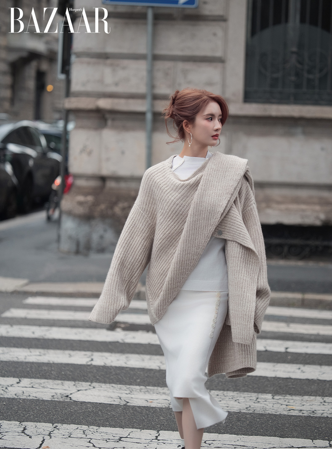 Biết rằng kiểu dáng áo khoác đi kèm khăn choàng của thương hiệu Sara Wong có thể tương đối khó tìm, bạn có thể mô phỏng bằng cách phối một chiếc khăn quàng bản rộng đầy hờ hững bên ngoài một chiếc áo măng-tô. Cách quấn khăn bất đối xứng tạo cảm giác ngẫu hứng, thanh lịch mà không quá cố gắng.