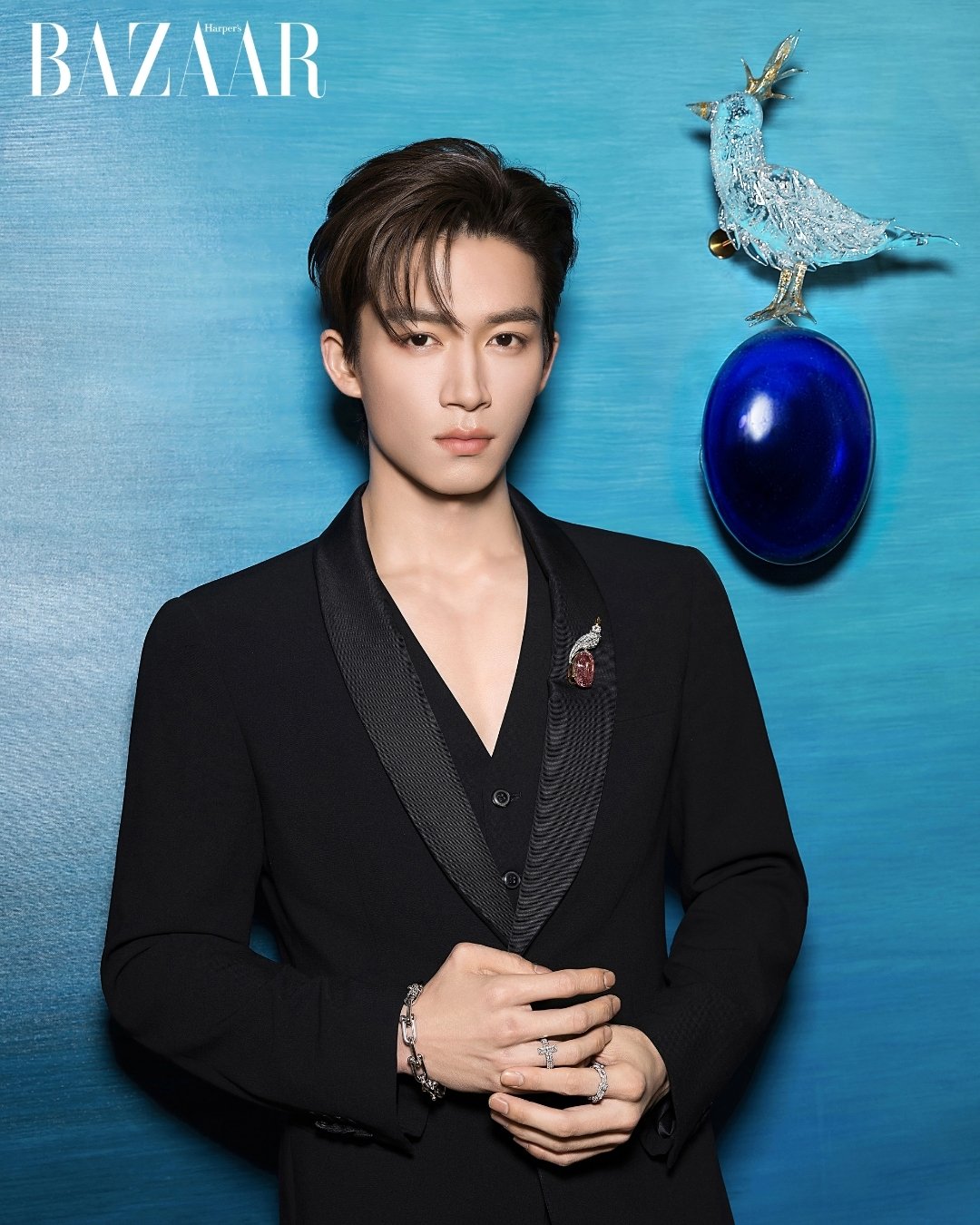 Kết hợp ghim cài áo high jewelry cùng nhẫn và vòng fine jewelry giúp Vương Tinh Việt nâng tầm diện mạo, trông sang trọng vượt bậc nhưng không mất đi vẻ trẻ trung của tuổi 23.