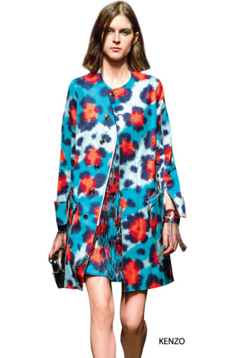 Kenzo đã thêm sắc màu và những hình in có kích cỡ lớn bất thường khiến những họa tiết rừng xanh trở nên trẻ trung hơn. Bạn có thể thấy sắc cam chói lọi và các cung bậc xanh, vàng đất cùng đường nét đốm hoa văn phá cách. Kenzo đặt tên cho họa tiết này là kiểu đám mây (clouded leopard).