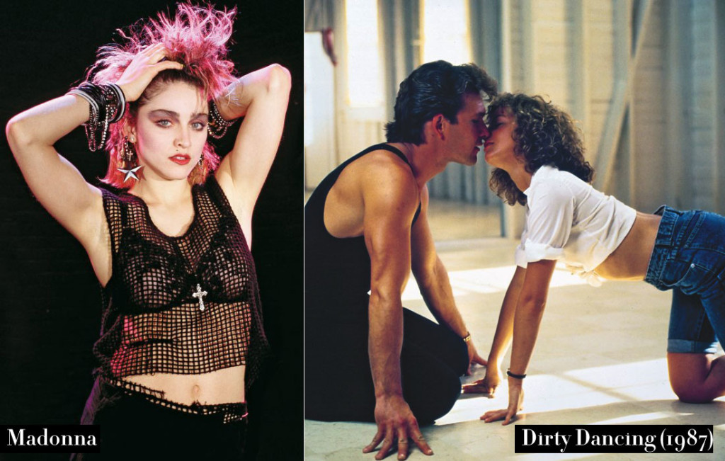 – Những cảnh nhảy múa và tình yêu cuồng nhiệt trong những bộ phim âm nhạc của thập niên 80 như Dirty Dancing và Flashdance khiến các cô gái điên cuồng chiếc áo crop top cực sexy.